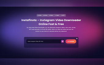 Instafinsta is a Chrome extension designed to simplify the process of downloading content from Instagram. With this tool, users can easily download videos, images, Reels, Stories, and IGTV posts in high quality with a single click. The extension is completely free to use and does not require any login, ensuring a quick and seamless experience for all users. Its lightweight design ensures that it operates smoothly within the Chrome browser without any interruptions.